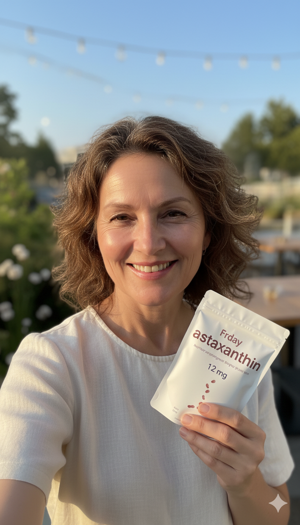 I started taking Frday's Astaxanthin about a month ago, and the difference in my skin is unreal. The fine lines around my eyes are softer, my skin feels hydrated all day, and I’ve got that healthy, lit-from-within look again — without changing anything else in my routine. It’s like my skin finally remembered how to be young.